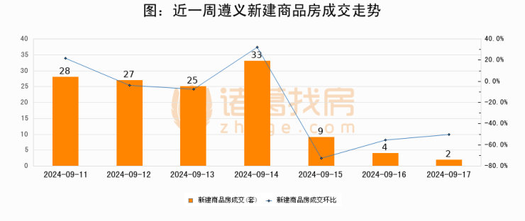 根据遵义市住房和城乡建设局数据显示,2024年09月17日遵义新建商品房成交2套,较昨日减少2套,环比下降50%