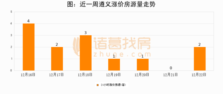 根据诸葛找房数据显示,遵义24小时涨价房源量为2套,较12月21日增加2套,环比上涨0%。与此同时,涨价房源占比小幅扩大,业主信心有所提升。