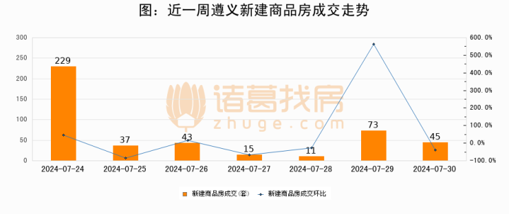 【遵义成交日报】07月30日新房成交45套、二手房21套;涨价房源4套