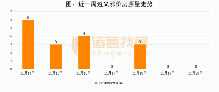 根据诸葛找房数据显示,遵义24小时涨价房源量为0套,较11月19日持平。