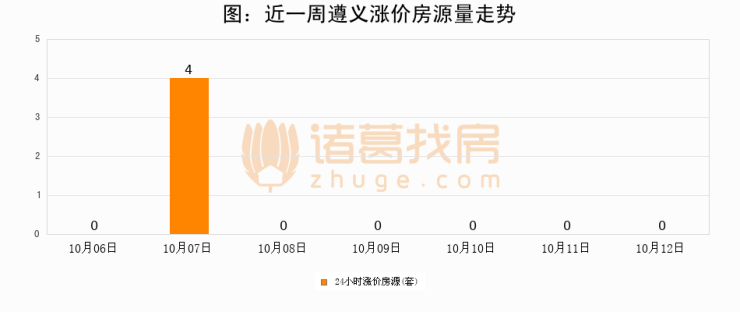 根据诸葛找房数据显示,遵义24小时涨价房源量为0套,较10月11日持平。