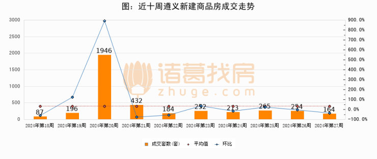 【遵义成交周报】第27周新房成交164套,二手房116套,涨价房源30套