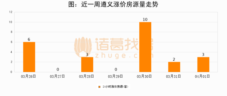 根据诸葛找房数据显示,遵义24小时涨价房源量为3套,较03月31日增加1套,环比上涨50%。与此同时,涨价房源占比小幅扩大,业主信心有所提升。