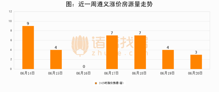 根据诸葛找房数据显示,遵义24小时涨价房源量为3套,较06月19日减少1套,环比下降25%。与此同时,涨价房源占比小幅回落,对于购房者来说是一个入市窗口期,购房者可抓住时机入市。
