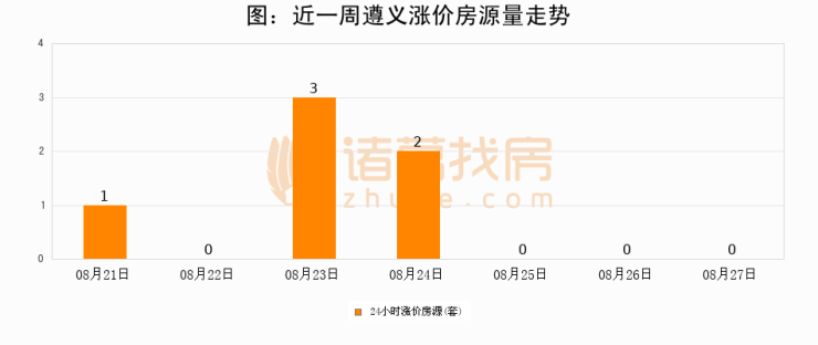 根据诸葛找房数据显示,遵义24小时涨价房源量为0套,较08月26日持平。