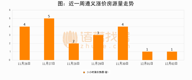 根据诸葛找房数据显示,遵义24小时涨价房源量为1套,较12月01日持平。
