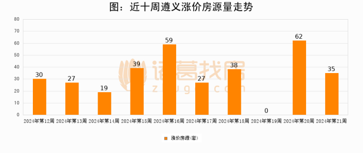 从调价房源来看,第21周遵义涨价房源35套,较上周下降43.5%。与此同时,21周涨价房源占比回落3.24个百分点,业主信心小幅波动,购房者可则需入市。