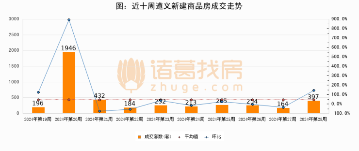 【遵义成交周报】第28周新房成交397套,二手房136套,涨价房源29套