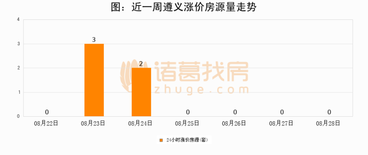 根据诸葛找房数据显示,遵义24小时涨价房源量为0套,较08月27日持平。