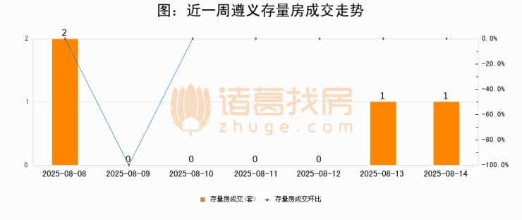 从存量房来看,2025年08月14日遵义存量房单日成交1套,比昨日持平。。从近一周存量房成交来看,遵义存量房日均成交套数为0套,08月14日单日成交1套,高于近一周平均水平0%。