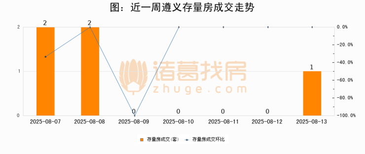 从存量房来看,2025年08月13日遵义存量房单日成交1套,比昨日增加1套,环比上涨0%。从近一周存量房成交来看,遵义存量房日均成交套数为0套,08月13日单日成交1套,高于近一周平均水平0%。