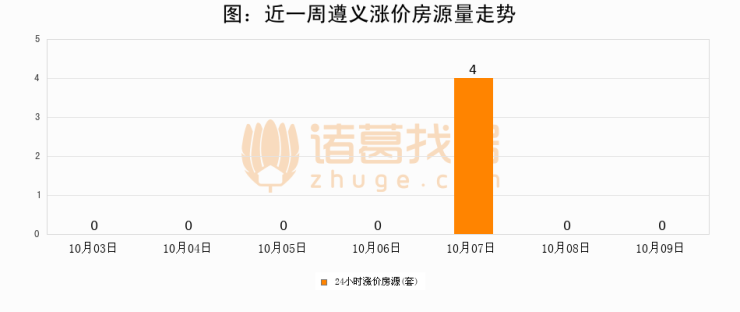根据诸葛找房数据显示,遵义24小时涨价房源量为0套,较10月08日持平。