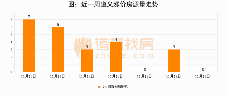根据诸葛找房数据显示,遵义24小时涨价房源量为0套,较11月18日减少3套,环比下降100%。与此同时,涨价房源占比小幅回落,对于购房者来说是一个入市窗口期,购房者可抓住时机入市。