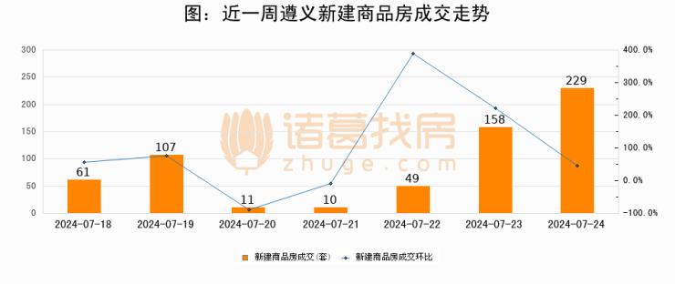 【遵义成交日报】07月24日新房成交229套、二手房17套;涨价房源2套