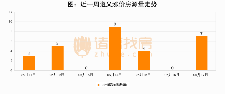 根据诸葛找房数据显示,遵义24小时涨价房源量为7套,较06月16日增加7套,环比上涨0%。与此同时,涨价房源占比小幅扩大,业主信心有所提升。