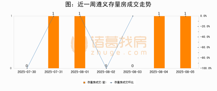 从存量房来看,2025年08月05日遵义存量房单日成交1套,比昨日持平。。从近一周存量房成交来看,遵义存量房日均成交套数为0套,08月05日单日成交1套,高于近一周平均水平0%。